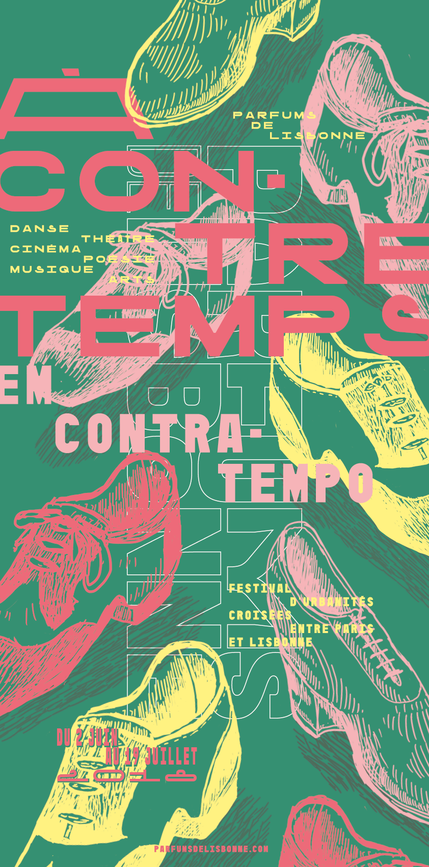 12ème édition du Festival d'urbanités croisées entre Lisbonne et Paris organisé par Cá e Lá (compagnie de théâtre bilingue français – portugais) sous la direction artistique et théâtrale du Centre de Recherches Interdisciplinaires sur le monde LUSophone (CRILUS - EA 369 Etudes Romanes) de l'Université Paris Nanterre en collaboration et avec le soutien de nombreux partenaires. Cette année, le festival Parfums de Lisbonne a pour thème : " À contretemps / Em contratempo « Echapper au confinement de l’apparente évidence » "